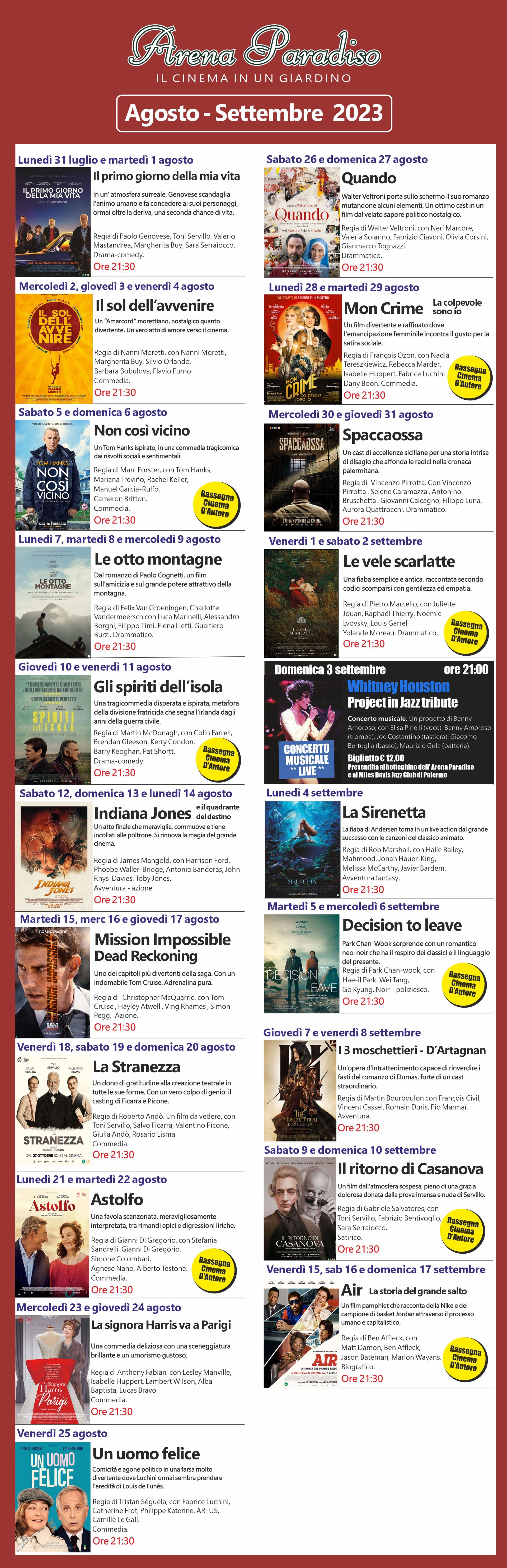 VARIAZIONI AL PROGRAMMA il film " I tre moschettieri " sarà programmato a data da destinarsi Il film " Il ritorno di Casanova " sarà proiettato il 10 e 11 settembre " Barbie " dal 7 al 9 settembre